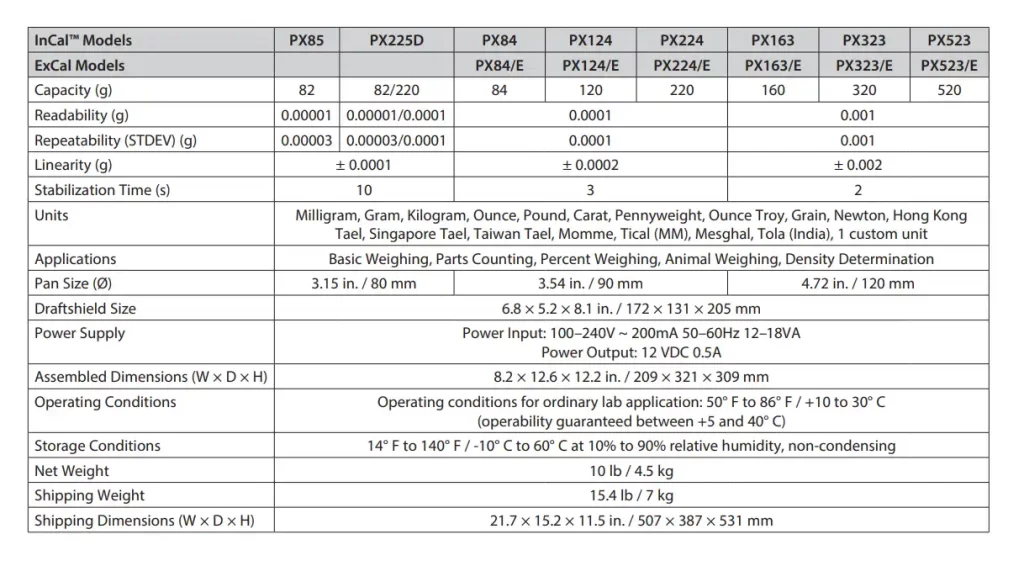 PX Series, Semi-Micro Analytical Balance